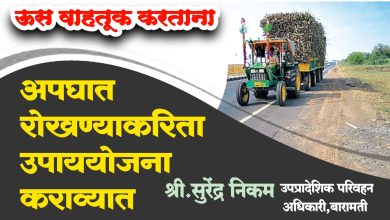 ऊस वाहतूक करतांना अपघात रोखण्याकरिता उपाययोजना कराव्यात, श्री. सुरेंद्र निकम, उपप्रादेशिक परिवहन अधिकारी,बारामती