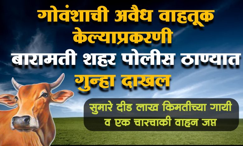 गोवंशाची अवैध वाहतूक केल्याप्रकरणी बारामती शहर पोलीस ठाण्यात गुन्हा दाखल सुमारे दीड लाख किमतीच्या गायी व एक चारचाकी वाहन जप्त.