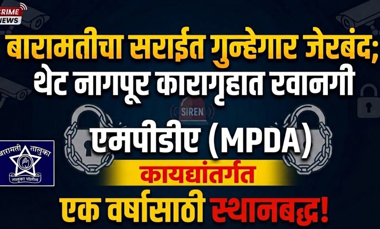 बारामतीचा सराईत गुन्हेगार जेरबंद; थेट नागपूर कारागृहात रवानगी एमपीडीए (MPDA) कायद्यांतर्गत १ वर्षासाठी स्थानबद्ध; बारामती तालुका पोलिसांची मोठी कारवाई