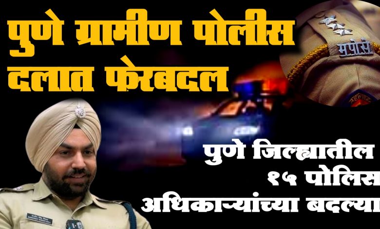 पुणे ग्रामीण पोलीस दलात फेरबदल, पुणे जिल्ह्यातील 15 पोलिस अधिकाऱ्यांच्या बदल्या.