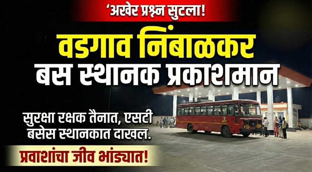 वडगाव निंबाळकर : येथील बस स्थानकात पसरलेले अंधाराचे साम्राज्य आणि प्रवाशांच्या सुरक्षेचा गंभीर प्रश्न ‘महाराष्ट्र पोलीस कारनामा’ (MPK NEWS) ने चव्हाट्यावर आणताच प्रशासनाला जाग आली आहे. या बातमीची आणि स्थानिक नागरिक ऋषिकेश जगताप यांच्या तक्रारीची तात्काळ गंभीर दखल घेत बारामती आगार प्रमुखांनी आणि वडगांव निंबाळकर सरपंचांनी बस स्थानकात विद्युत व्यवस्था केली असून, बसेस स्थानकात येण्यासाठी सुरक्षा रक्षकाची नेमणूक करण्यात आली आहे.