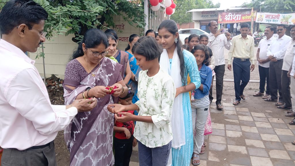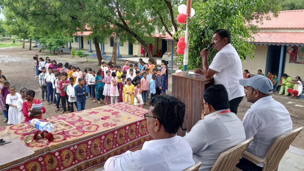 सरपंच श्री सुनील ढोले, उपसरपंच सौ संगीताताई शहा, श्री जितेंद्र पवार व प्राचार्य श्री.तांबे सर यांनी सर्व विद्यार्थ्यांना शिका व मोठे व्हा असा संदेश देऊन नविन शैक्षणिक वर्षासाठी शुभेच्छा दिल्या.