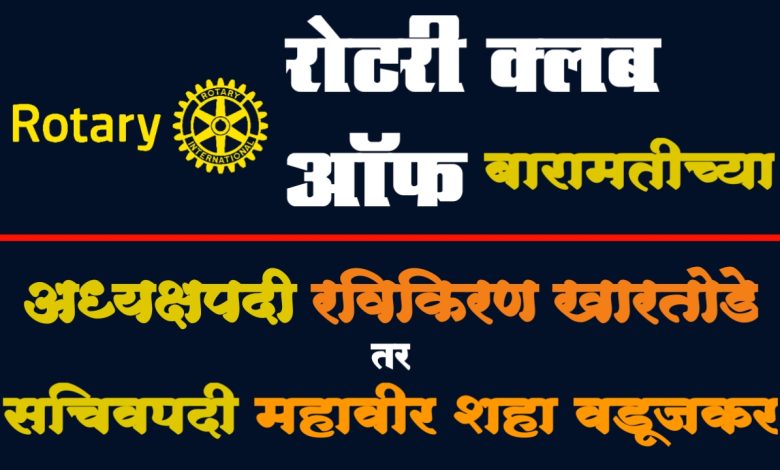 रोटरी क्लब ऑफ बारामतीच्या अध्यक्षपदी,रविकिरण खारतोडे तर सचिवपदी,महावीर शहा वडूजकर