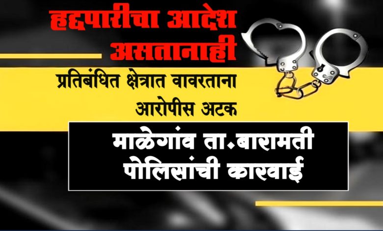 हद्दपारीचा आदेश असतानाही प्रतिबंधित क्षेत्रात वावरताना आरोपीस अटक, माळेगांव ता.बारामती पोलिसांची कारवाई