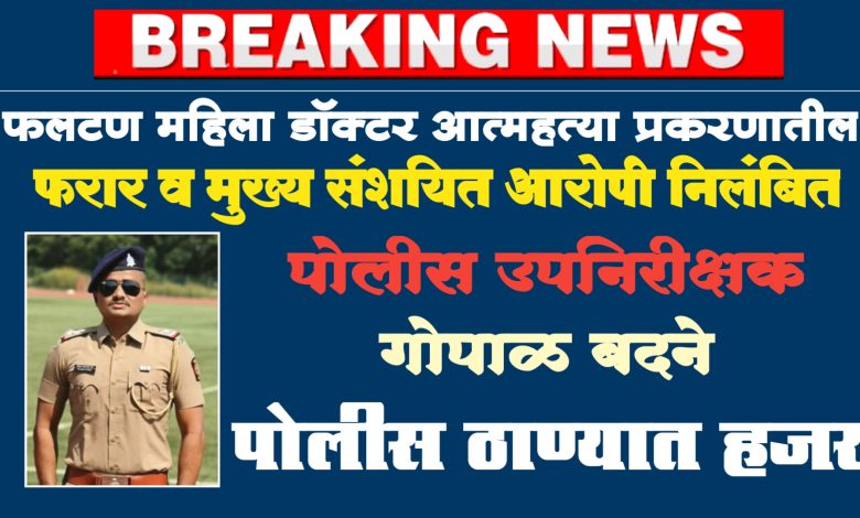 फलटण महिला डॉक्टर आत्महत्या प्रकरणातील फरार व मुख्य संशयित आरोपी, निलंबित पोलीस उपनिरीक्षक,गोपाळ बदने पोलीस ठाण्यात हजर