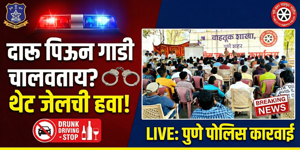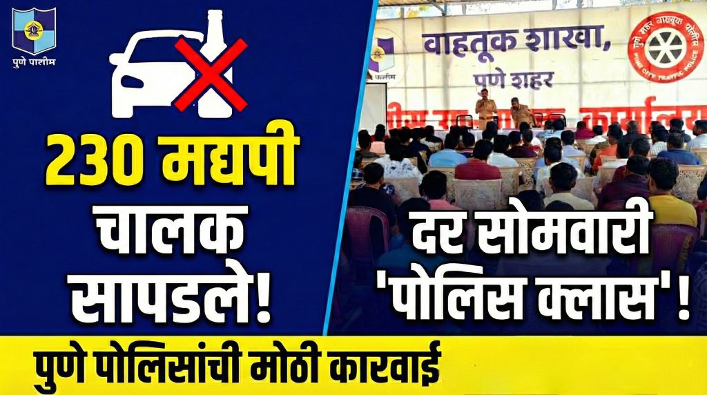 पुणे शहर वाहतूक पोलिसांची धडक कारवाई: ‘ड्रंक अँड ड्राईव्ह’ मोहिमेत २३० तळीराम जाळ्यात येरवडा येथे विशेष समुपदेशन सत्र संपन्न; आता प्रत्येक सोमवारी होणार जनजागृती