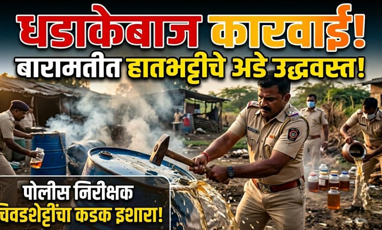 बारामती : बारामती शहर आणि परिसरात फोफावलेल्या अवैध हातभट्टी दारू व्यवसायाचे समूळ उच्चाटन करण्यासाठी बारामती शहर पोलिसांनी मोठी आणि धडक मोहीम हाती घेतली आहे. सलग चार दिवस राबवलेल्या या कारवाईत अनेक अवैध दारूचे अड्डे आणि घरगुती भट्ट्या उद्ध्वस्त करण्यात आल्या आहेत. पोलिसांच्या या ‘ऑल आऊट’ कारवाईमुळे अवैध दारू विक्रेत्यांचे धाबे दणाणले असून, शहरात कायदा व सुव्यवस्था अधिक बळकट झाली आहे.
