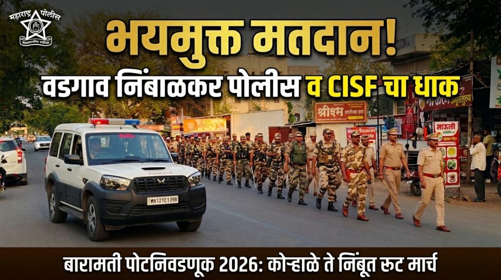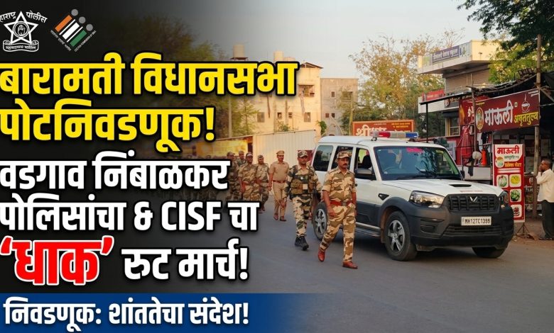 बारामती विधानसभा पोटनिवडणूक: वडगाव निंबाळकर पोलीस आणि CISF जवानांचे धडक पथसंचलन (रूट मार्च)
