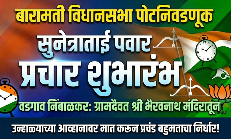 बारामती विधानसभा पोटनिवडणूक: सुनेत्राताई पवार यांच्या प्रचार सभेचा वडगाव निंबाळकरमधून जोरदार शुभारंभ.