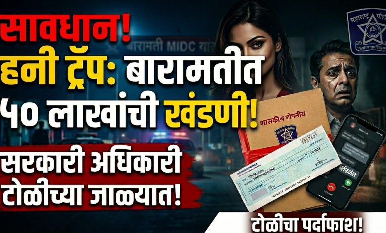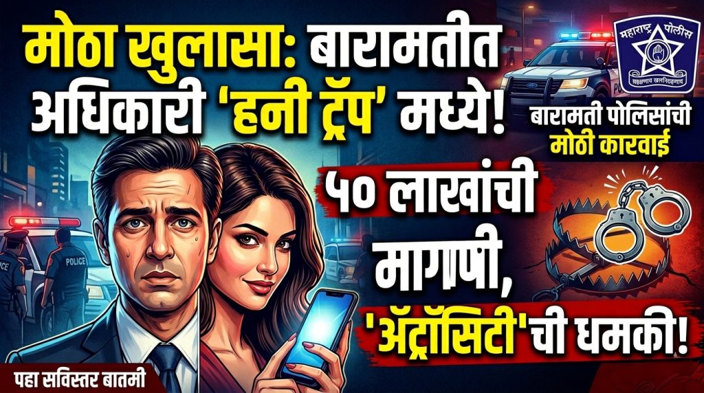 बारामती : एका उच्चपदस्थ सरकारी अधिकाऱ्याला जाळ्यात ओढून, त्याचे व्हिडिओ रेकॉर्डिंग करून आणि नंतर बलात्कार व ॲट्रॉसिटीच्या खोट्या गुन्ह्याची धमकी देऊन लाखो रुपयांची खंडणी उकळणाऱ्या एका टोळीवर बारामती पोलिसांनी मोठी कारवाई केली आहे. या धक्कादायक प्रकारामुळे परिसरात एकच खळबळ उडाली आहे.