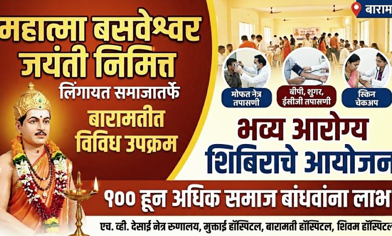 महात्मा बसवेश्वर जयंतीनिमित्त बारामतीत विविध उपक्रम; आरोग्य शिबिरासह लोकशाही विचारांचा जागर
