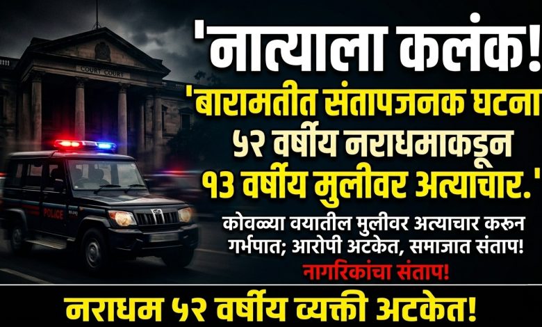 बारामती : बारामती तालुक्यात माणुसकीला काळीमा फासणारी आणि सामाजिक स्वास्थ्य बिघडवणारी एक अत्यंत संतापजनक घटना उघडकीस आली आहे. एका ५२ वर्षीय नराधमाने स्वतःच्याच नात्यातील अवघ्या १२ ते १३ वर्षांच्या एका असहाय्य मुलीवर वारंवार लैंगिक अत्याचार केल्याचा धक्कादायक प्रकार समोर आला आहे. या अत्याचारातून ती कोवळी मुलगी गरोदर राहिल्यानंतर, प्रकरण अंगाशी येईल या भीतीने एका खाजगी रुग्णालयात तिचा बळजबरीने गर्भपातही करण्यात आला. या भयंकर घटनेने संपूर्ण बारामती तालुका हादरला असून, समाजात संतापाची लाट उसळली आहे.