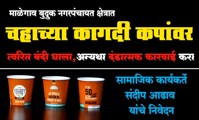याच गोष्टीचा गांभीर्याने विचार करून चहाच्या कागदी कप वापरावर माळेगाव बुद्रुक मध्ये त्वरित बंदी आणावी व बंदी यशस्वी होण्याकरिता संबंधितांना जाहिर नोटीसा काढून दंडात्मक कारवाया सुरु कराव्यात अशा आशयाचे निवेदन श्री.बालाजीराव लोंढे,मुख्याधिकारी माळेगाव नगरपंचायत यांना सामाजिक कार्यकर्ते व पत्रकार श्री.संदिपजी आढाव यांच्या वतीने देण्यात आले आहे.