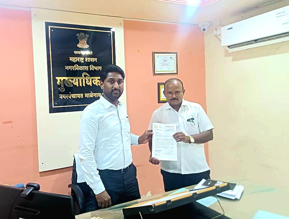 माळेगांव बुद्रुक येथे चहाची दुकाने तसेच हॉटेल्स मध्ये कागदी कप वापरावर त्वरित बंदी आणावी व बंदी यशस्वी होण्याकरिता दंडात्मक कारवाई करण्याचे मुख्याधिकारी, माळेगाव नगरपंचायतीला निवेदन.