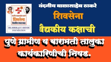 वंदनीय बाळासाहेब ठाकरे शिवसेना वैद्यकीय कक्षाची पुणे ग्रामीण व बारामती तालुका कार्यकारिणीची निवड.