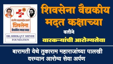 शिवसेना वैद्यकीय मदत कक्षाच्या वतीने वारकऱ्यांची आरोग्यसेवा, बारामती येथे तुकाराम महाराजांच्या पालखी दरम्यान आरोग्य सेवा अर्पण